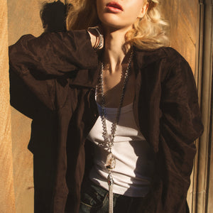 • Avoid contact with water, as it can react with leather and metals, causing color changes and structural damage. It is recommended to remove the piece before bathing, entering a pool, or spa.